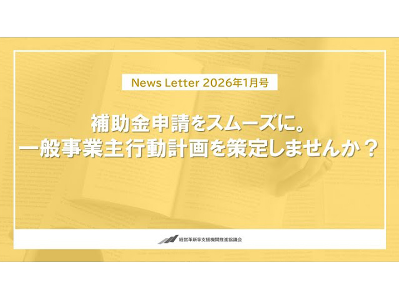 1月新着情報&新着動画 投稿日時 2026年1月6日 (2026年1月6日) 補助金申請をスムーズに。「一般事業主行動計画」を策定しませんか? 【2026年1月号】一般事業主行動計画 ご案内資料ダウンロード令和7年度補正予算案発表!中小企業支援策のポイント解説! 【2026年1月号】令和7年度補正予算 ご案内資料ダウンロード